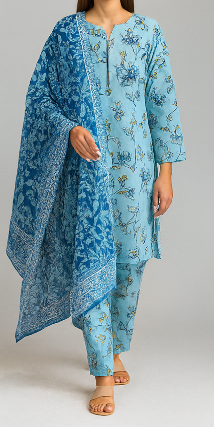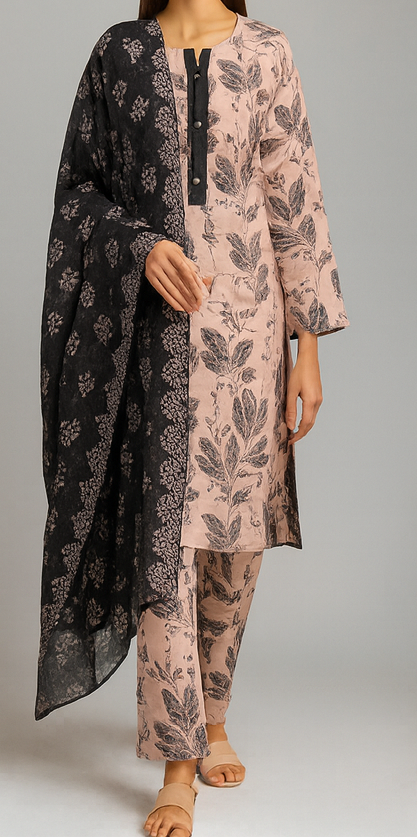 Sapphire Doriya Lawn Stitched 3-Piece – Elegantly designed for comfort and style. Crafted with breathable doriya lawn fabric, this outfit features a beautifully printed shirt, matching trouser, and a stylish dupatta, making it a perfect choice for casual and semi-formal wear.